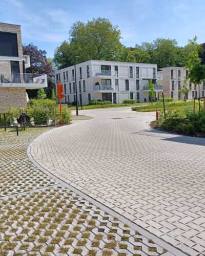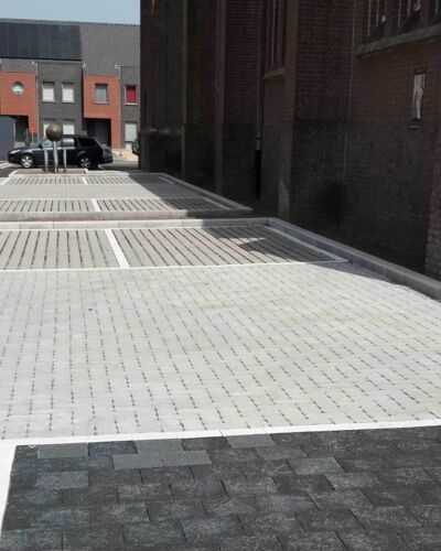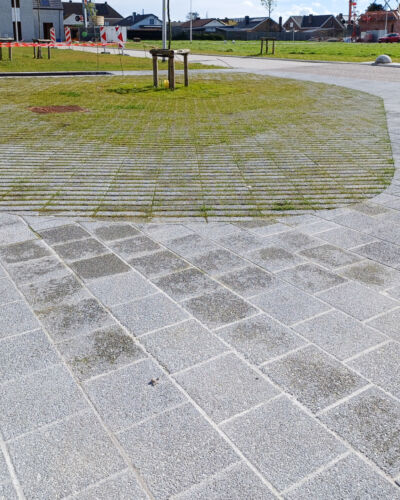 Waterdoorlatende- en waterpasserende bestrating in combinatie met ons speciale funderingssysteem zorgt voor een efficiënte verwerking van hemelwater.