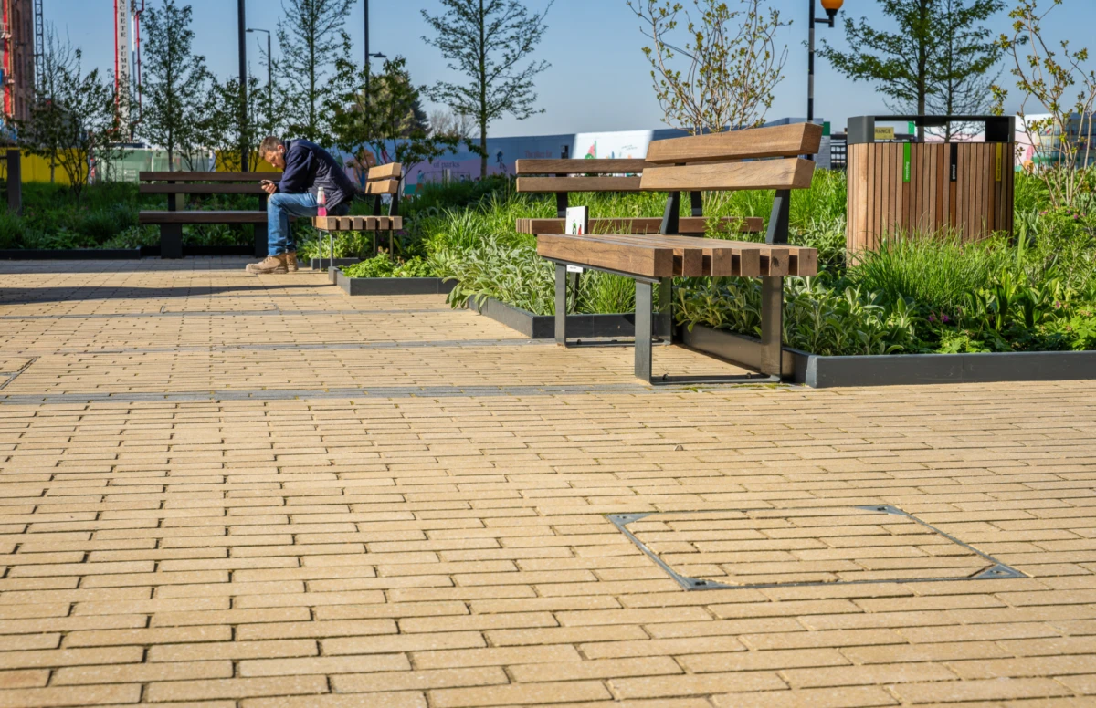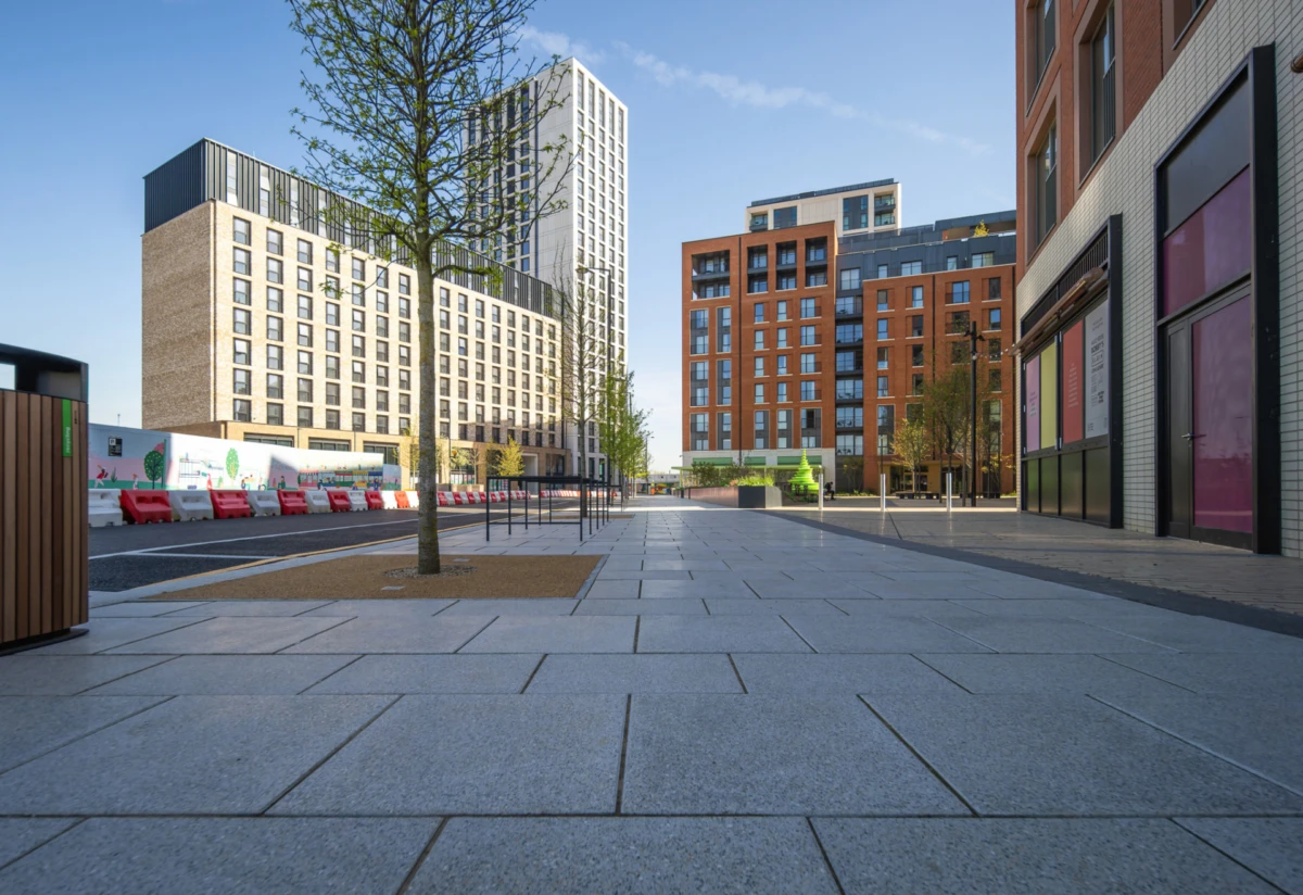 Bleijko heeft al ruim 1.500 m² Brigora Tabacco geleverd voor het Pavilion en Pocket Park. Daarnaast is een bestelling geplaatst voor meer dan 2.000 m² A’gora Fjord SL tegels voor het High Street-gedeelte van de ontwikkeling.